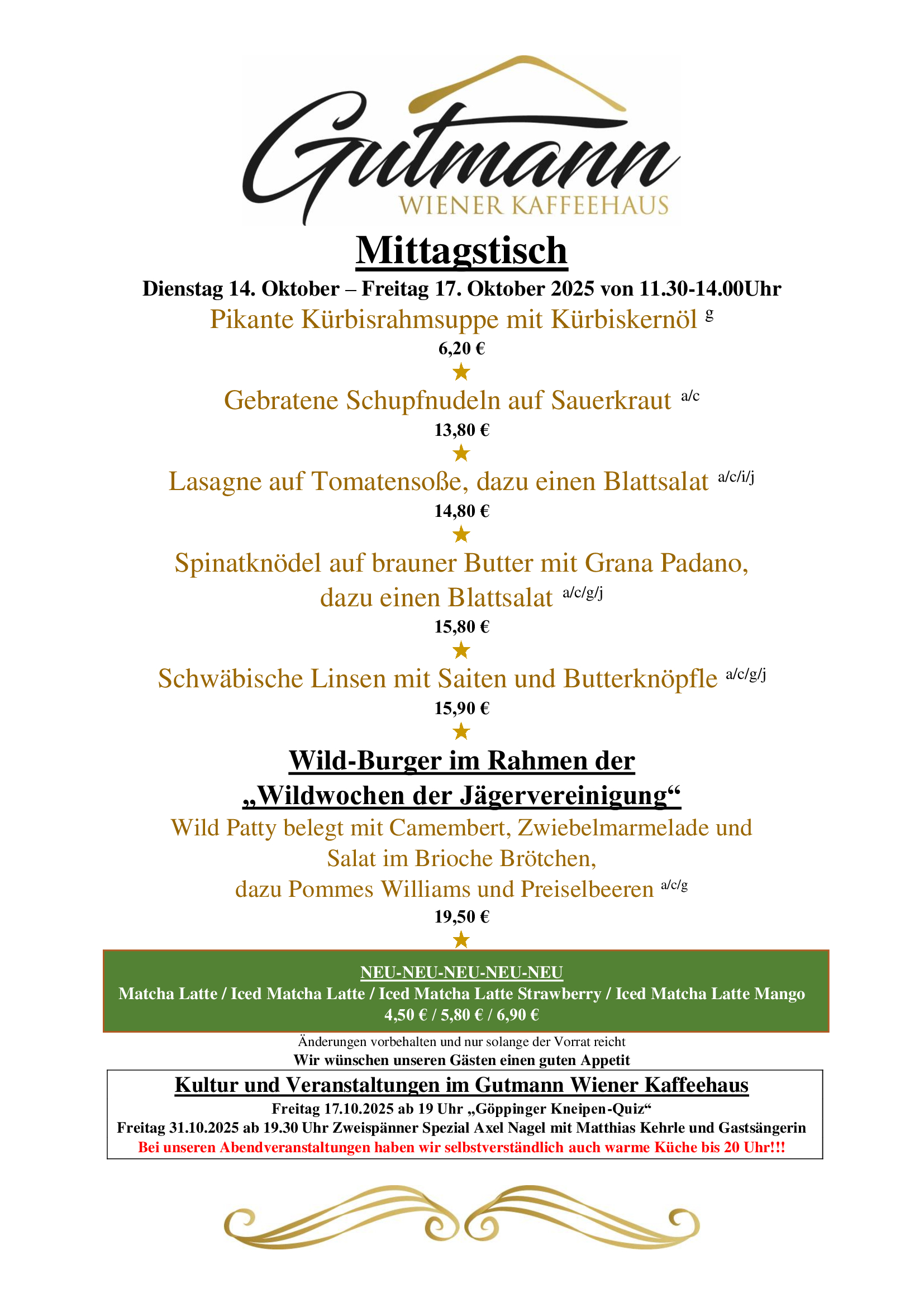 Wir freuen uns, Sie wieder bei uns im Kaffeehaus begrüßen zu dürfen.